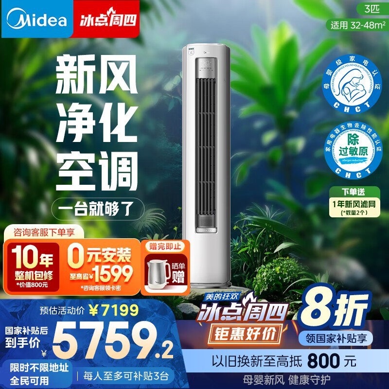 美的3匹新一级能效空调KFR-72LW仅5296元享好价