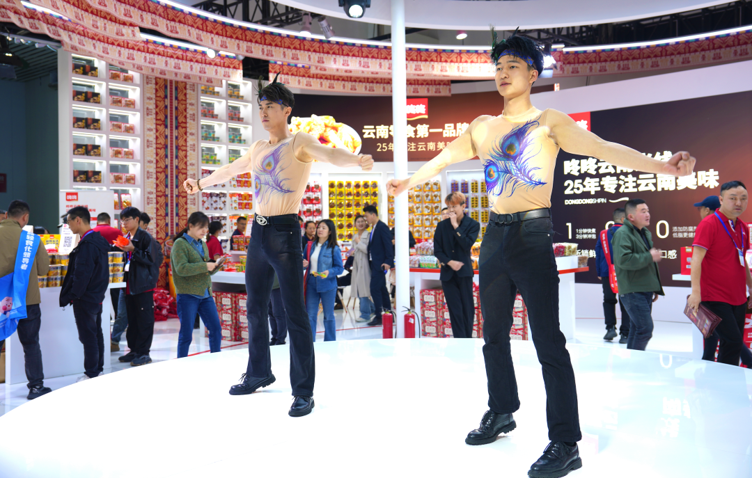来自山东做流通渠道、水果渠道的刘总一眼就被咚咚展位吸引住了,“远远就看到咚咚展位很大很醒目,还有帅哥在跳舞,非常想进来看看。正好我代理着螺蛳粉品类,想补充米线产品,咚咚产品包装也吸引人。刚才品尝过了,要说米线还得是云南的好吃。”