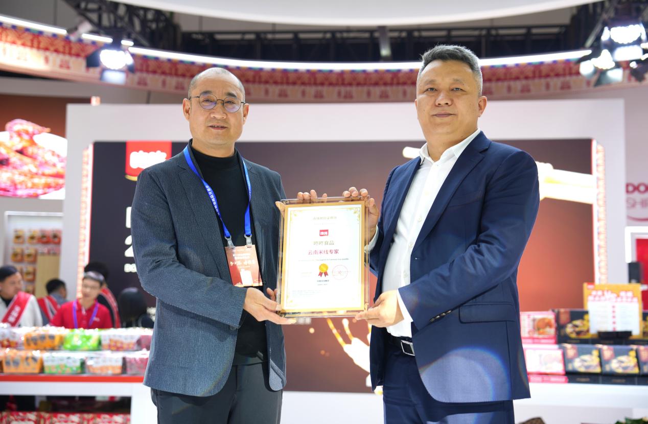 在这场备受瞩目的春糖会上,还迎来了一个振奋人心的高光时刻。国内知名的咨询认证公司尚普咨询为咚咚食品颁发了 “云南米线专家” 的权威认证。尚普咨询联合创始人邓新宇现场宣布,咚咚云南米线在销售量及销售额方面、研发人员数量及研发投入规模方面、产能规模及产量规模方面,以及荣获多项行业重量级认证等品牌影响力方面,均处于行业领先。尚普咨询从市场、技术、产品以及品牌影响力四个维度,结合专家评估法、联合评估法和竞品对比法三种论证方法,以“领导者论证模型+三大研究方法论”的模式,对咚咚食品的市场地位进行了科学论证,最终证实了咚咚食品符合“云南米线专家”地位。