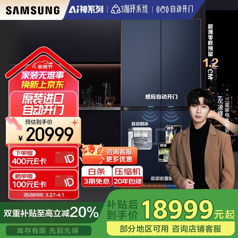 三星615L十字门三系统AI节能冰箱限时优惠至15360元