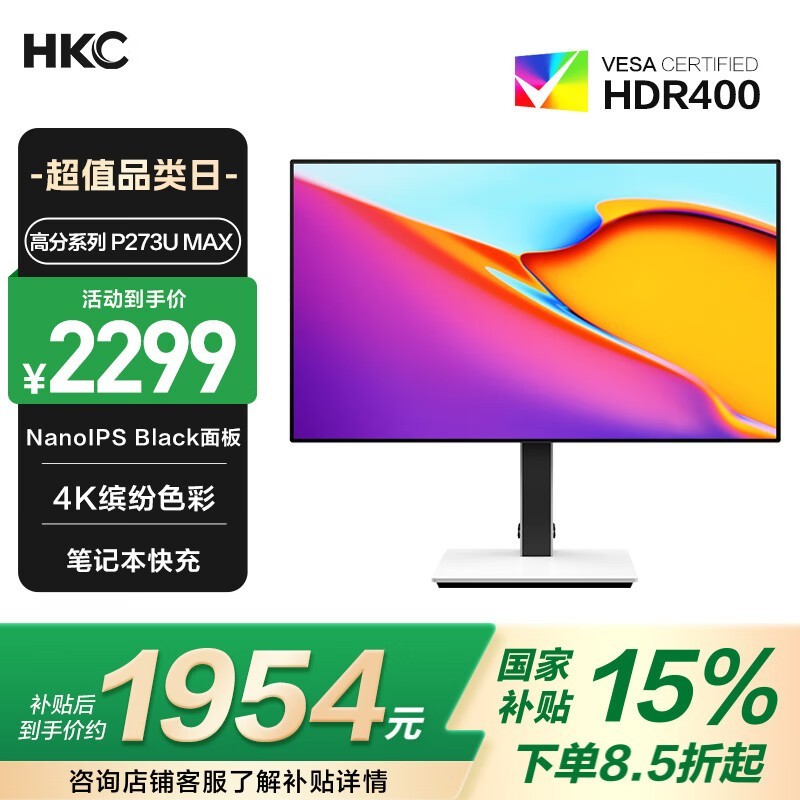 HKC P273U MAX 27英寸4K NanoIPS Black显示器促销