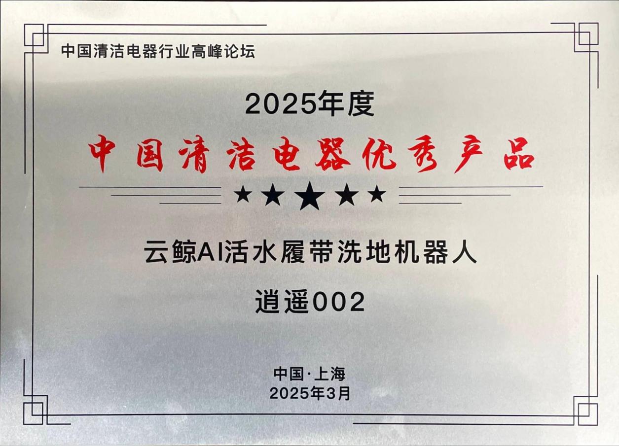 近日,由中国家用电器协会指导,《电器》杂志社承办的“2025中国清洁电器行业高峰论坛”在上海隆重召开。本届论坛围绕全球化进程中的布局策略与差异化竞争优势打造、如何把握技术创新的前沿方向等关键议题,展开深度剖析及研讨,并对优秀的企业和产品进行表彰。凭借出色的创新表现及产品力,云鲸智能最新一代产品--AI活水履带洗地机器人逍遥002(以下简称云鲸逍遥002)荣膺“2025年度中国清洁电器优秀产品”。
