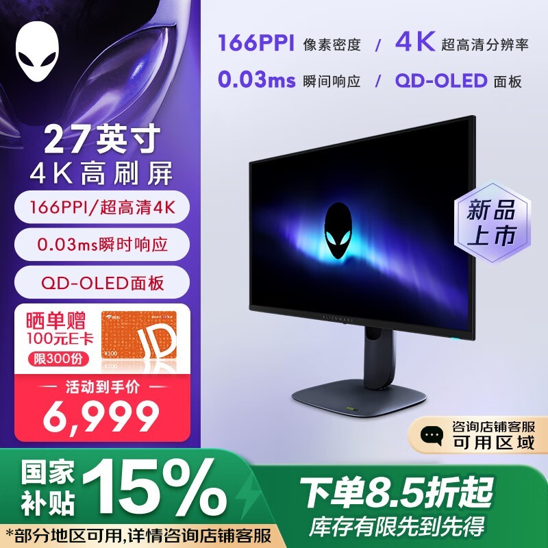外星人AW2725Q显示器促销,到手价5843元