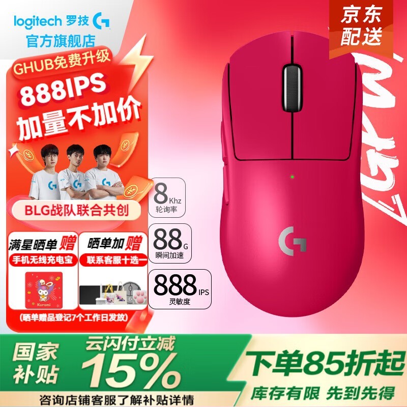 罗技Logitech GPW三代无线鼠标粉色版首发促销