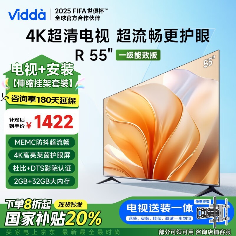 Vidda R55一级能效电视4K超清京东到手1169元