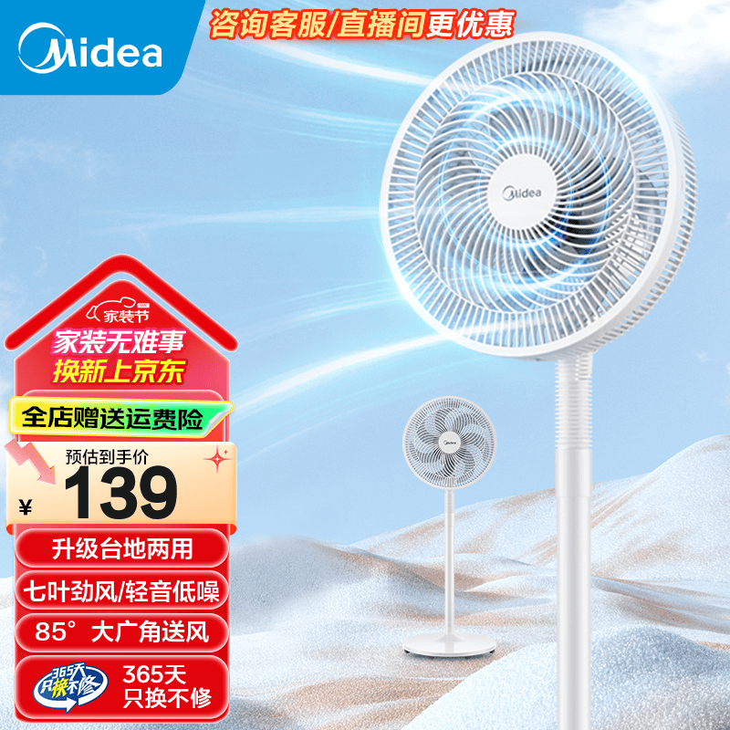 美的SAF30AC落地扇白色,119元促销