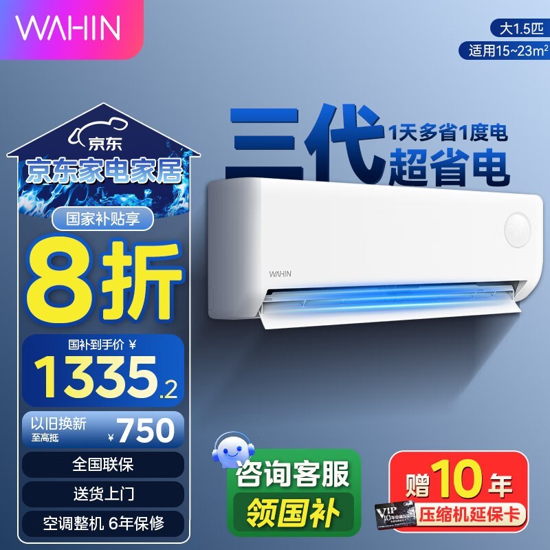 华凌空调挂机大1.5匹冷暖节能省电卧室壁挂式空调