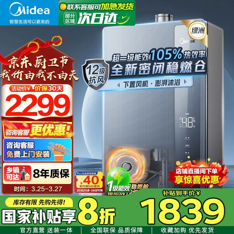 美的燃气热水器16L大容量智能恒温多重安全保护