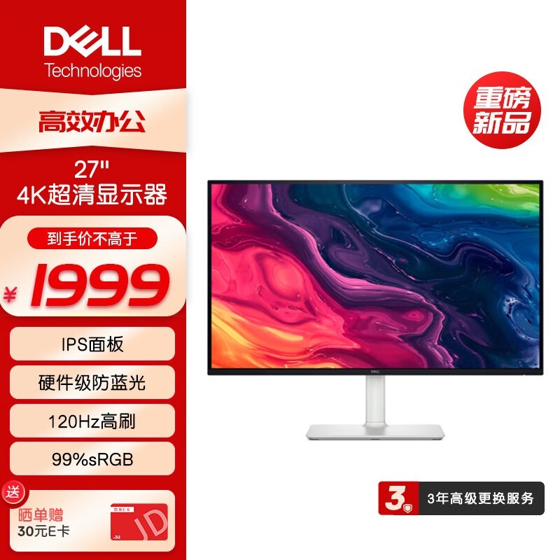 戴尔S2725QS 27英寸4K显示器京东优惠价