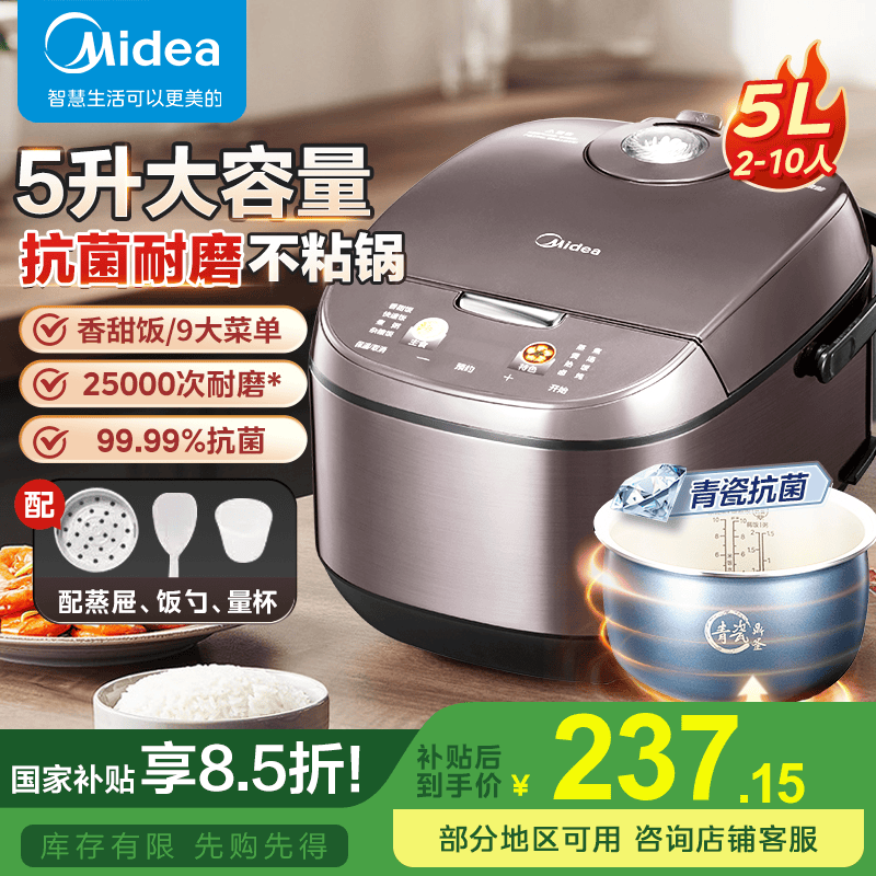 美的MB-WFS5017TM电饭煲5L大容量智能预约仅207元