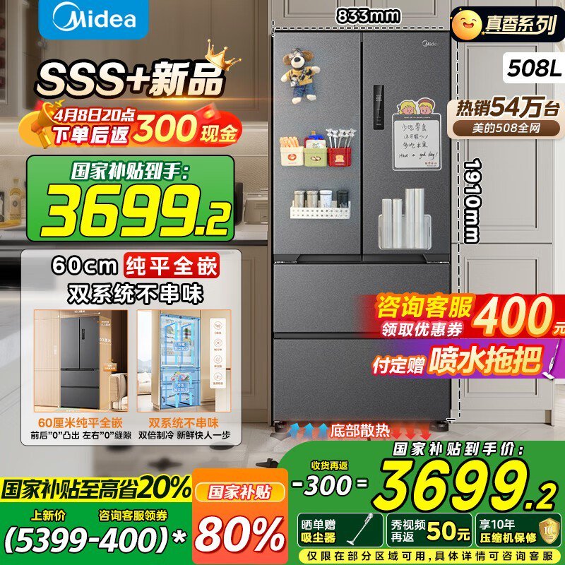 美的真香系列508L双系统冰箱京东促销仅3649元