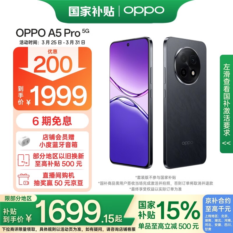 OPPO A5 Pro 5G手机京东特惠仅1699元起