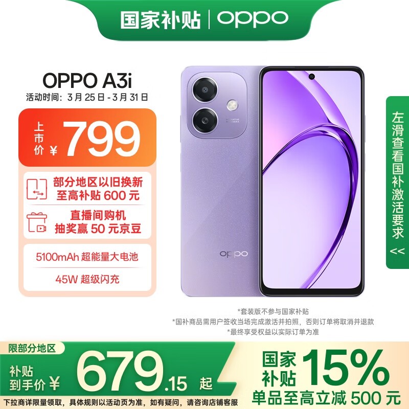 OPPO A3i手机6GB+128GB星辰紫版京东759元