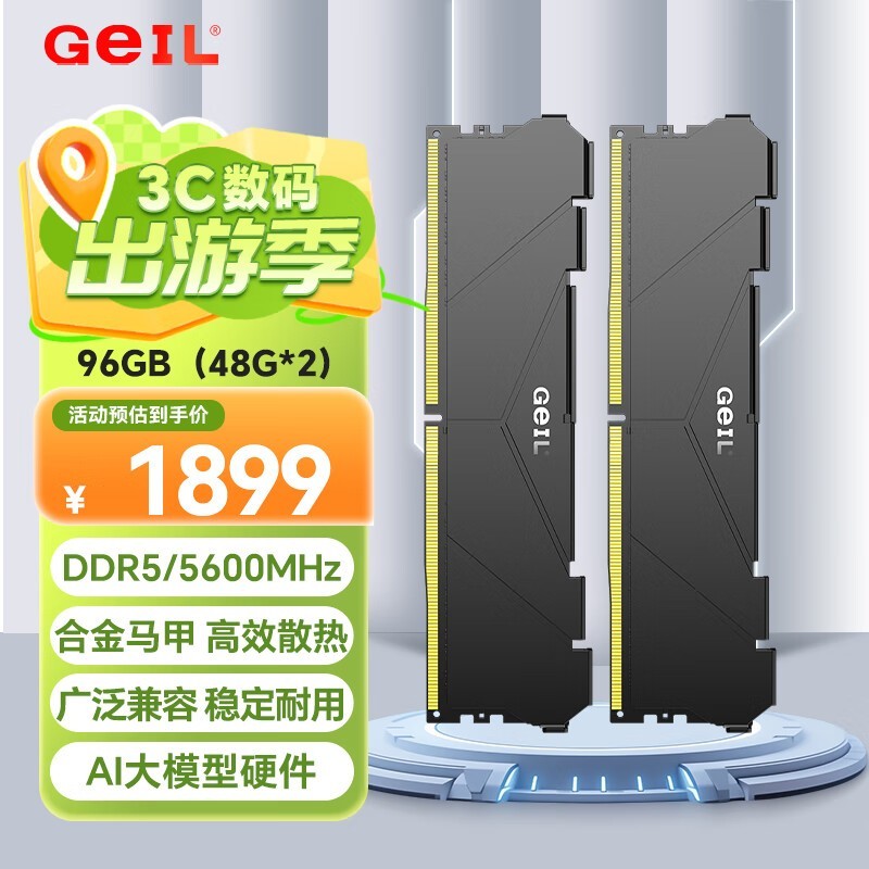 金邦GeIL巨蟹马甲条DDR5-5600 96G台式机内存条套装促销