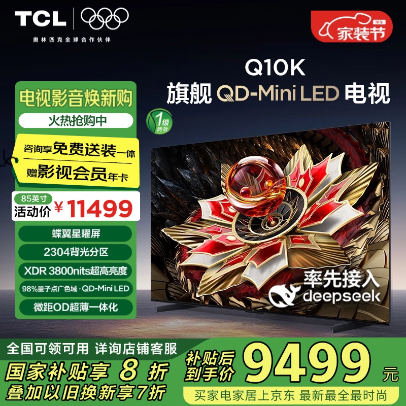 TCL 85Q10K 85英寸电视,到手价7382元
