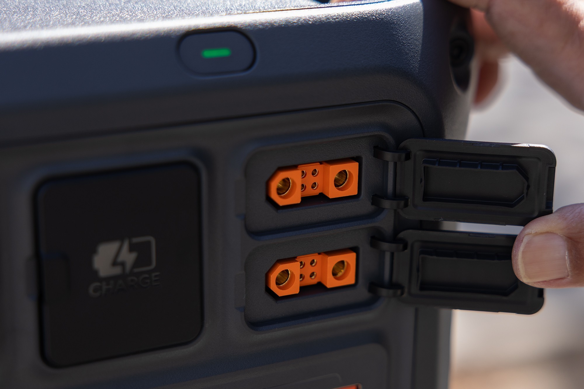 与之前的DJI Power 1000户外电源一样,DJI Power 2000户外电源上也有两个提手,用来在搬运户外电源使用。这两个提手设计的比较粗,非常牢固,抓住时的握持感是非常不错的。