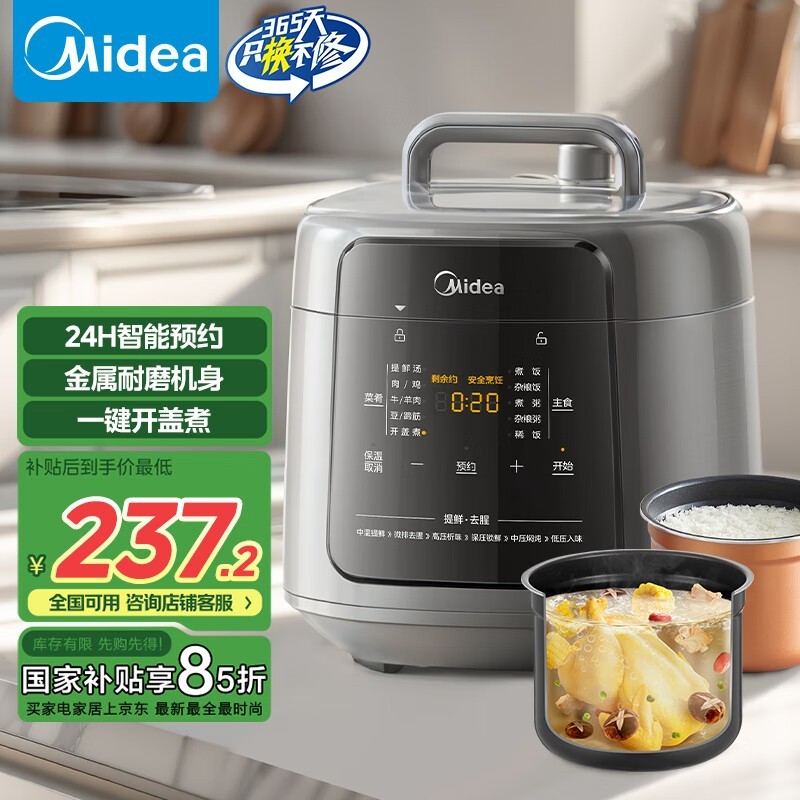 美的MY-C5938电压力锅5L大容量智能预约多功能煲汤神器仅126元