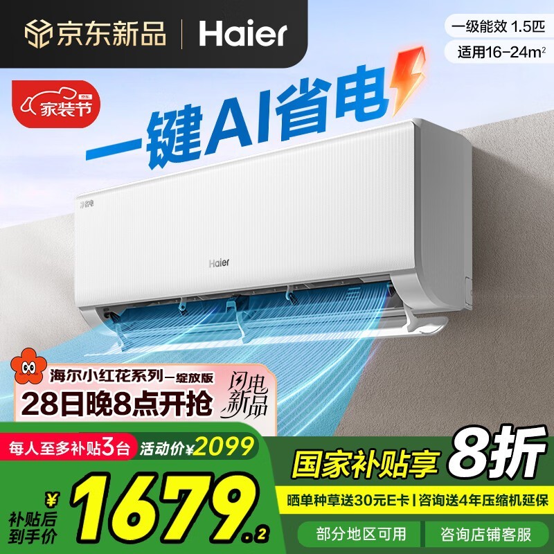 海尔1匹净省电空调京东优惠低至1536元