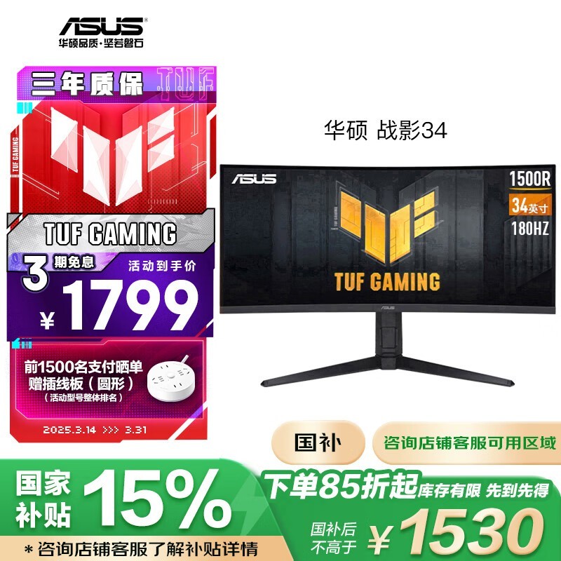 华硕ASUS VG34VQL3A 34英寸2K显示器京东优惠