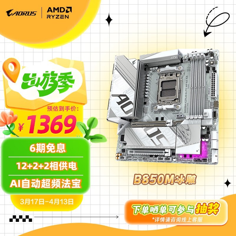 技嘉冰雕B850M AORUS ELITE WIFI6E主板促销