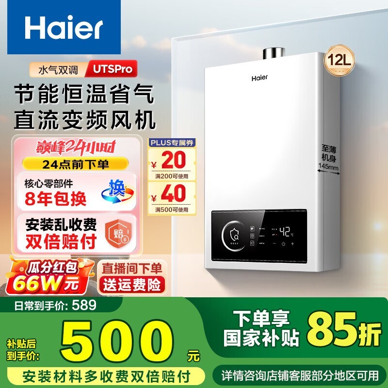 海尔JSQ22-12UTSPRODMCM燃气热水器12L大容量促销
