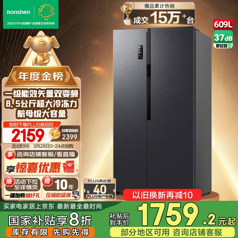 容声609L风冷对开门冰箱到手价1429元