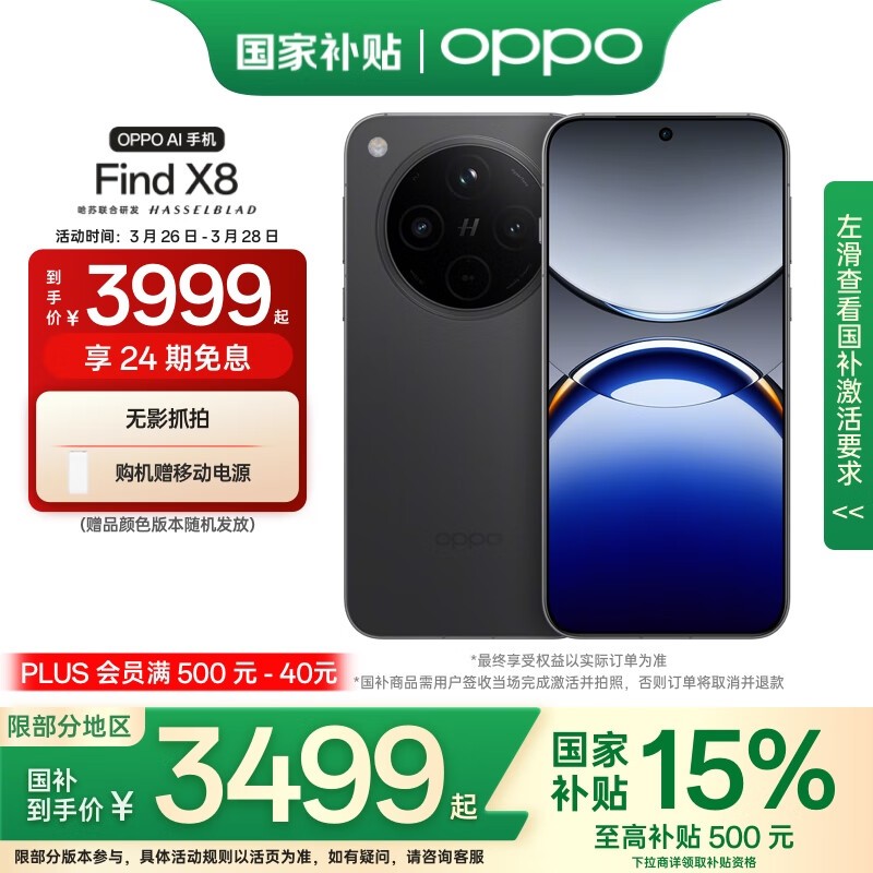 OPPO Find X8 5G(16GB+512GB星野黑)低至4159元