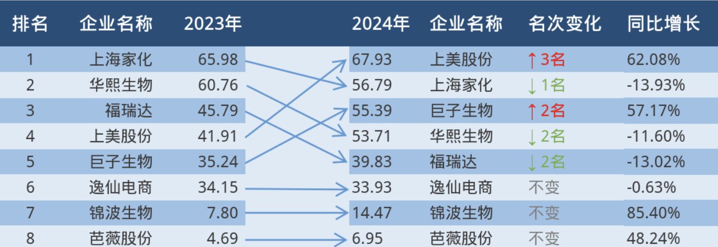 上市国产美妆企业营收变化。单位:亿元