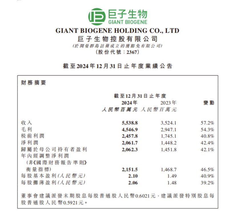【亿邦原创】3月26日,巨子生物发布2024年财报。财报显示,2024年,巨子生物收入55.39亿元,同比增长57.17%;净利润20.62亿元,同比增长42.36%;归属于母公司持有者盈利20.62亿元,同比增长42.05%;年内经调整净利润21.52亿元,同比增长46.49%。