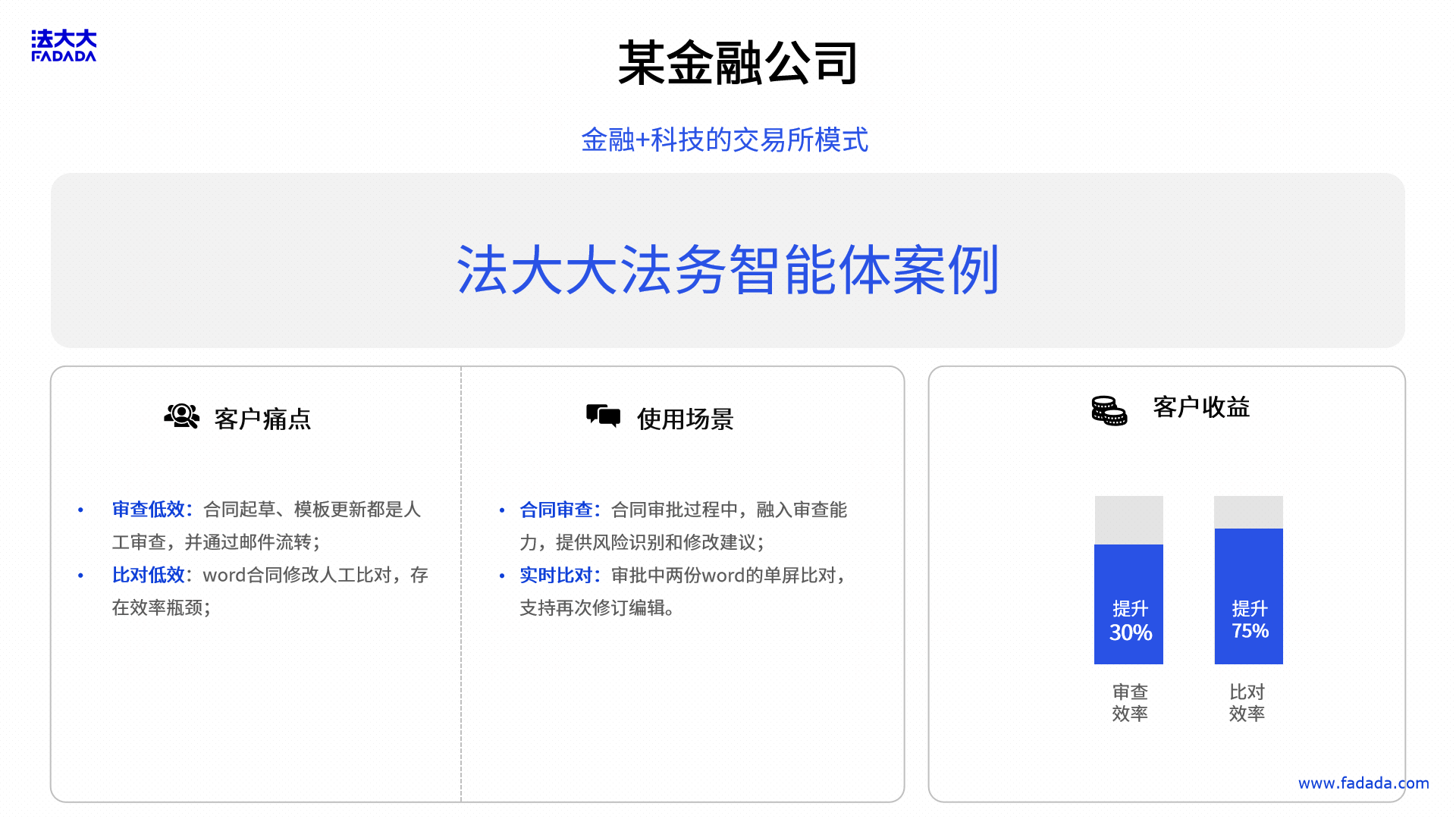 案例2:某金融公司——依托法大大法务AI智能体实现“金融+科技”交易所模式