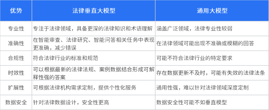 与通用大模型相比,法律垂直大模型专注于法律领域,具备更深的法律知识和术语理解能力。在合同审查中,能够精准识别关键条款,有效减少因理解偏差或法律术语误判导致的潜在风险。