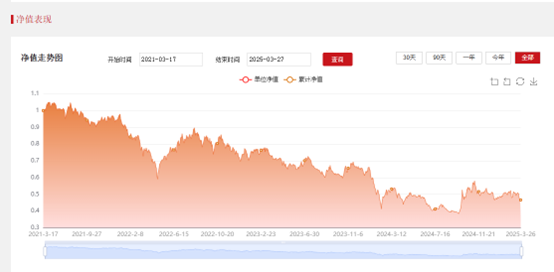 截至3月26日数据显示,东方阿尔法招阳A成立四年,基金净值腰斩,同类排名垫底。
