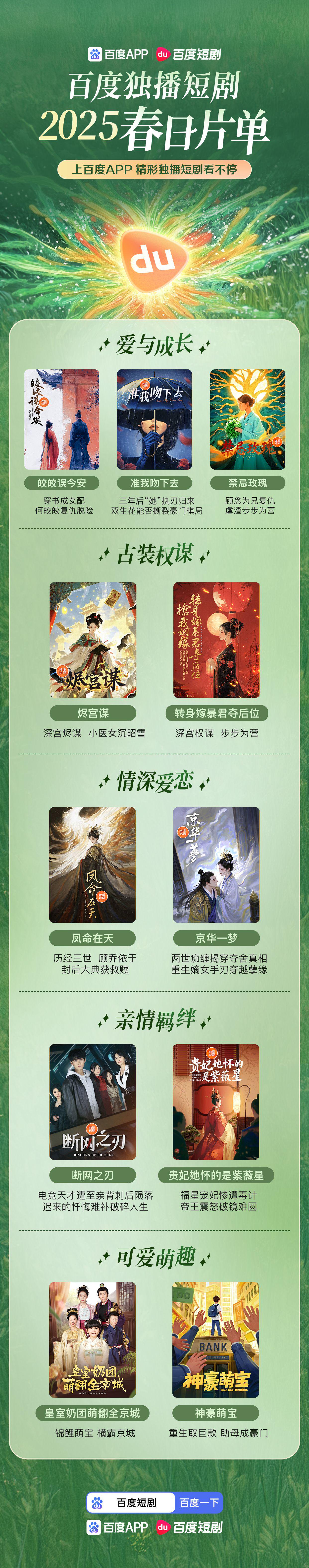 与此同时,在百家合伙人短剧专场成都站,百度APP联合演员何悠悠、韩江宇共同发布了百度独播短剧2025春日片单,内容丰富多样,涵盖言情、古装、萌趣等多类型,以精品制作独播剧扩大平台内容供给,进一步满足平台用户旺盛的消费需求。
