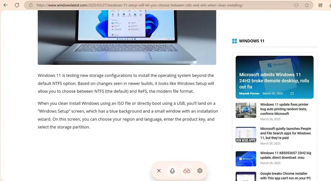 IT之家援引科技媒体 Windows Latest 实测结果,显示该功能虽能识别页面内容,但存在响应中断、交互受限、视野范围狭窄等明显缺陷,目前仅适合提取基础信息,尚不具备实用价值。