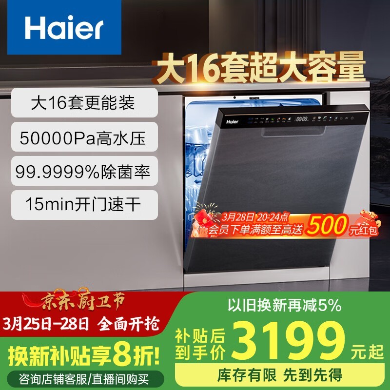 海尔晶彩系列16套洗碗机京东优惠价2834元