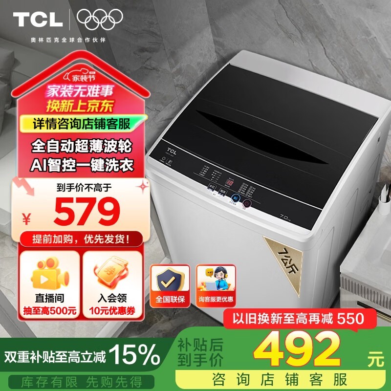 TCL XQB70 - 36SP 7KG波轮洗衣机到手价447元
