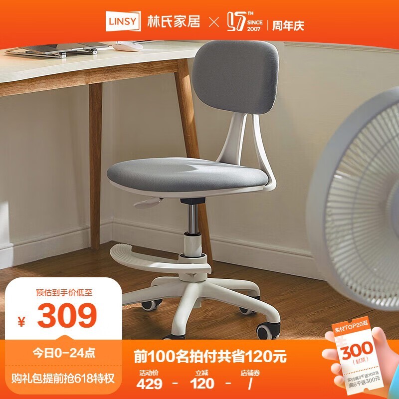 林氏家居BY008 B电脑椅现代简约设计带脚踏圈舒适办公椅