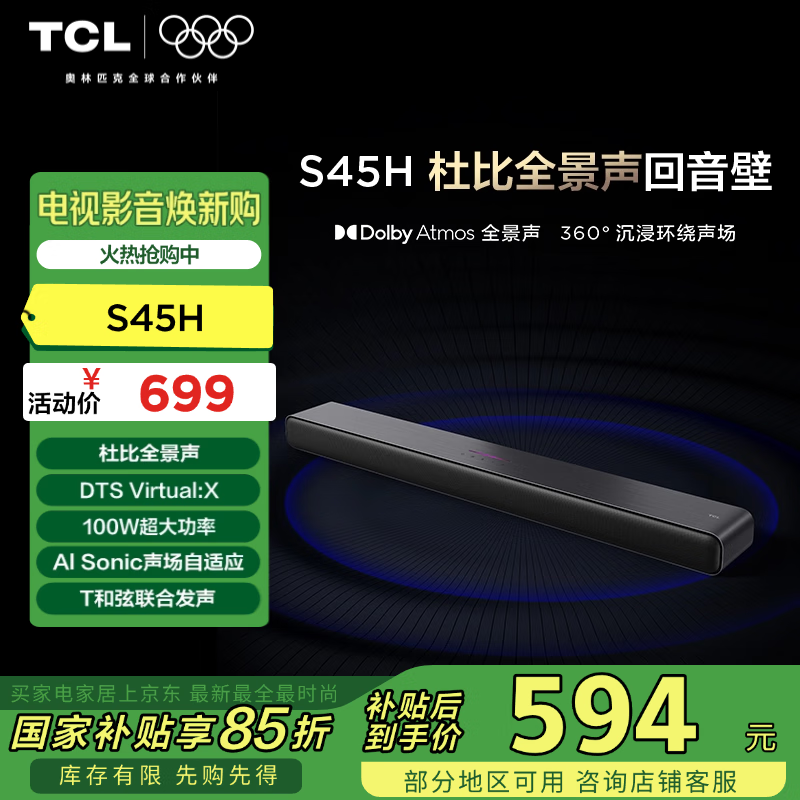 TCL S45H回音壁超值优惠,到手价557元