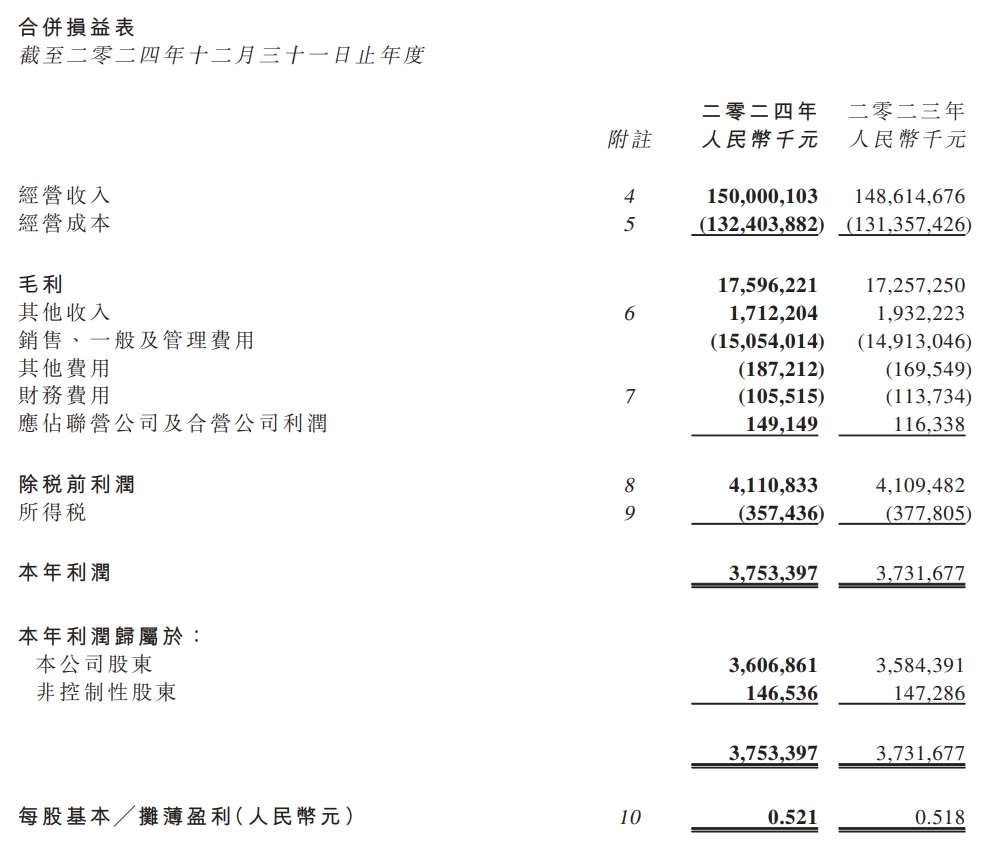 结合本集团全年稳健的经营业绩和良好的现金流水平,董事会建议2024年度派发末期股息每股 0.2187 元,分红比例为 42%。