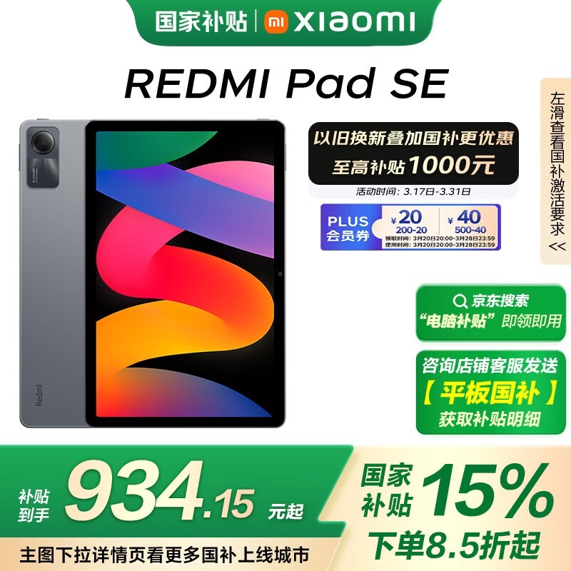 红米Pad SE平板京东促销,到手价895元