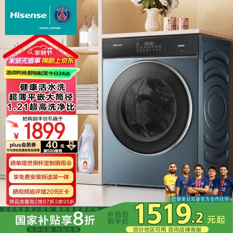 海信滚筒洗衣机HG10IE2全自动10公斤京东促销仅1110元