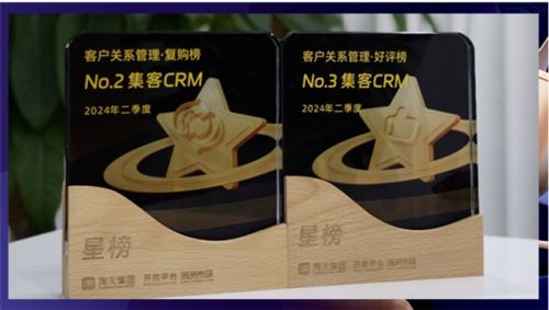 • 集客CRM 连续7年荣获阿里-淘拍档“最受欢迎客户关系管理软件”;2021年服务天猫商家数TOP1;连续5年蝉联京东“京卓越”优秀服务商,2024年连续2季度以超第二名20%的复购率稳居阿里淘系CRM软件复购榜TOP1。