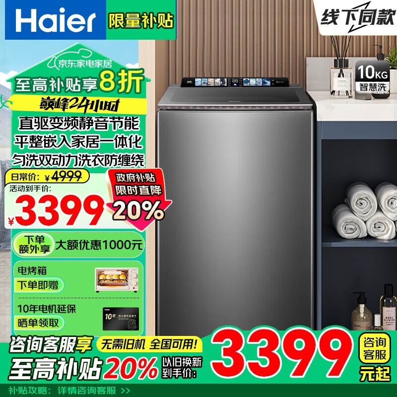 海尔精华洗系列波轮洗衣机10KG大容量双动力防缠绕促销