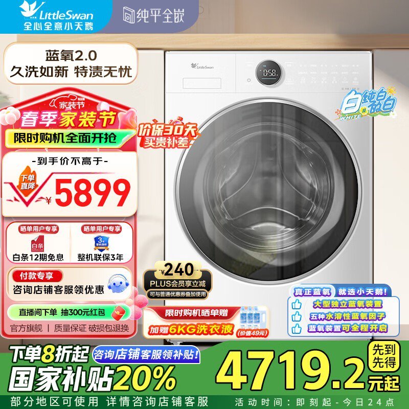 小天鹅直驱滚筒洗衣机10公斤大容量京东特惠