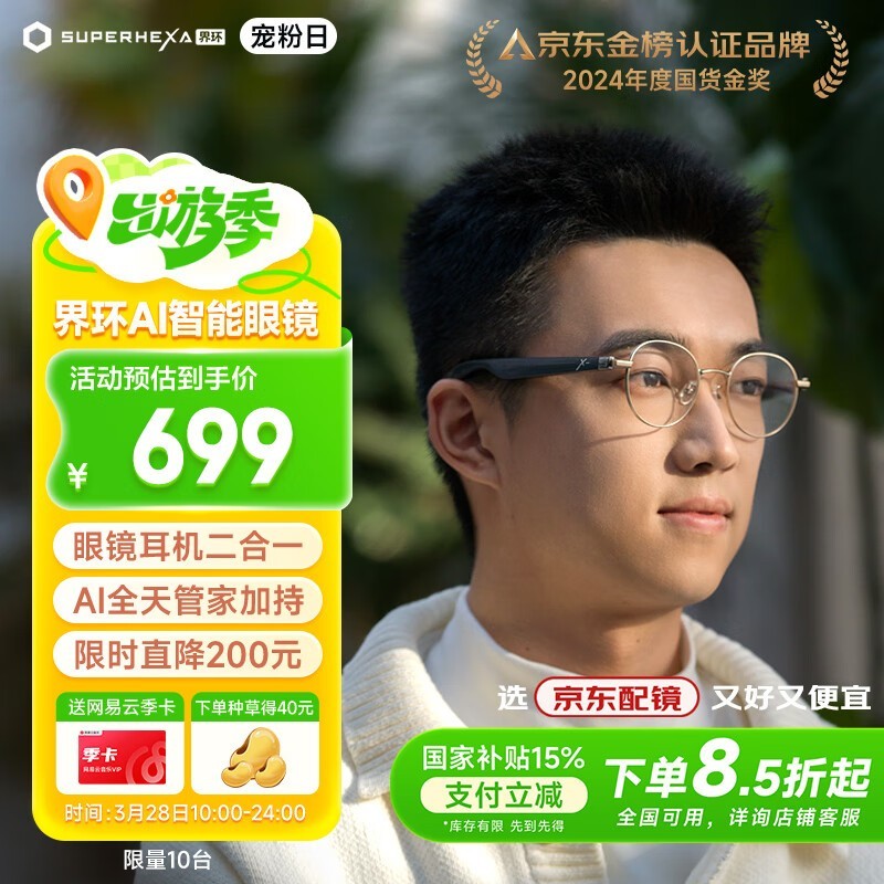界环SUPERHEXA Ai音频眼镜金属圆框日暮金京东促销