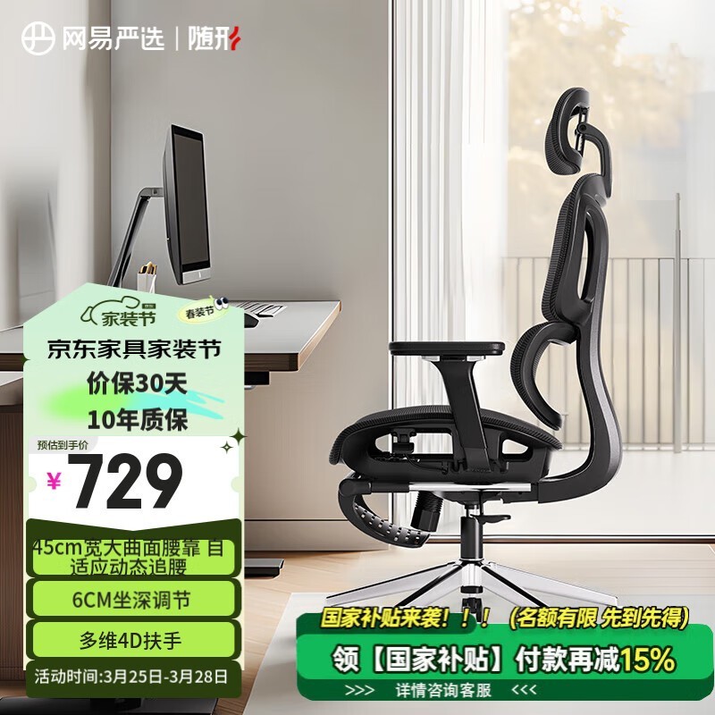 网易严选小蛮腰S9 Pro电脑椅黑色带搁脚款促销