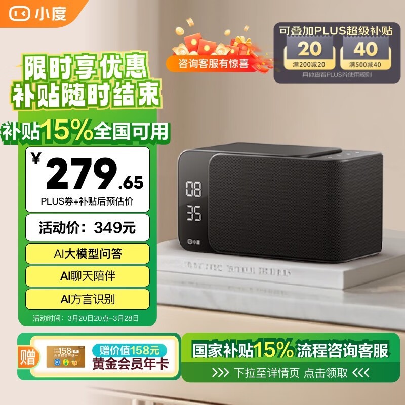 小度智能音箱MatePro黑色版享优惠到手仅261元