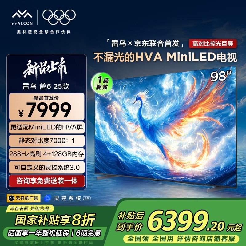 雷鸟鹤6 25款98英寸电视机京东优惠价6309元