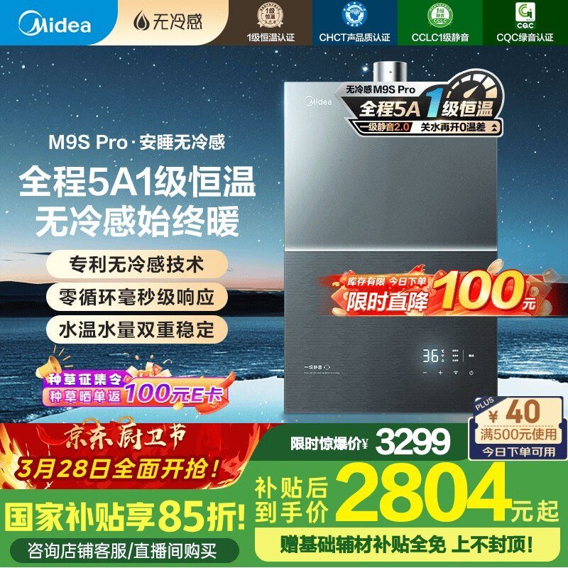 美的JSQ30-M9S Pro燃气热水器16L精准恒温零冷水 Promo
