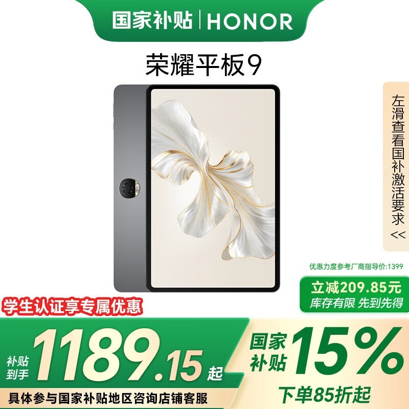 荣耀HONOR平板9标准版12.1英寸大屏性能卓越护眼出众促销